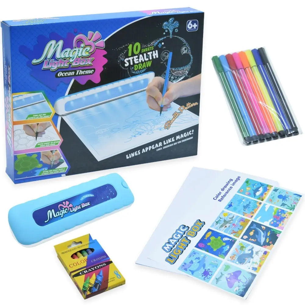 Pizarra Mágica Luz UV Dibujo Secreto Aparece Ocean + Crayones y Marcadores