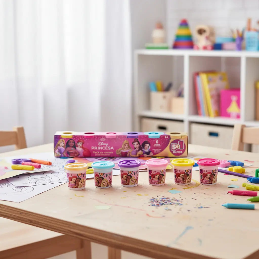 Descubre el Set 5+1 Masas Princesas de Disney, un producto diseñado para estimular la creatividad y la imaginación de los más pequeños.